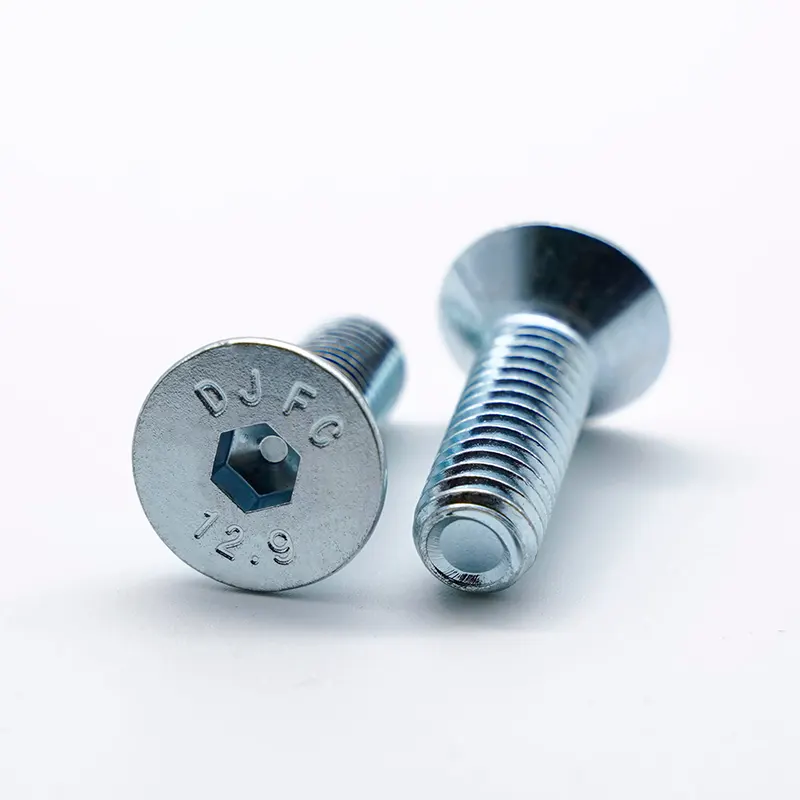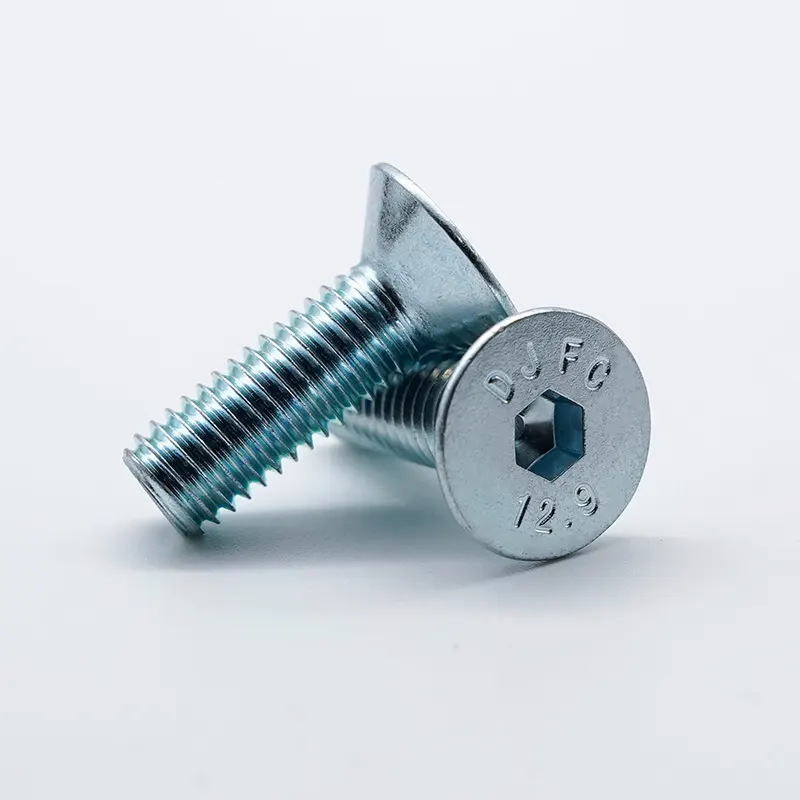 Kernefordelen ved grad 12.9 galvaniserede hex-socket-tællingsspidsskapsskruer er, at de opfylder kravene til både ultrahøj styrke og effektive belastningsbærende i kompakt rum: deres 12.9-grade styrke giver en ultimativ belastningskapacitet langt overskrider af almindelige rustfrie stålskruer og er især egnet til tunge belastninger, chok eller vibrationsmiljøer; Og nedtænkt hoveddesign, der er unikt for DIN 7991 -standarden, muliggør installation med overfladen af stikket, sparer plads og undgår interferens. Kombineret med den hexagonale drevstruktur kan der opnås høj forudindlæst låsning i et lille rum, hvilket gør det til et ideelt valg til højstyrke tyndvæggede strukturforbindelser i tunge maskiner og præcisionsudstyr.